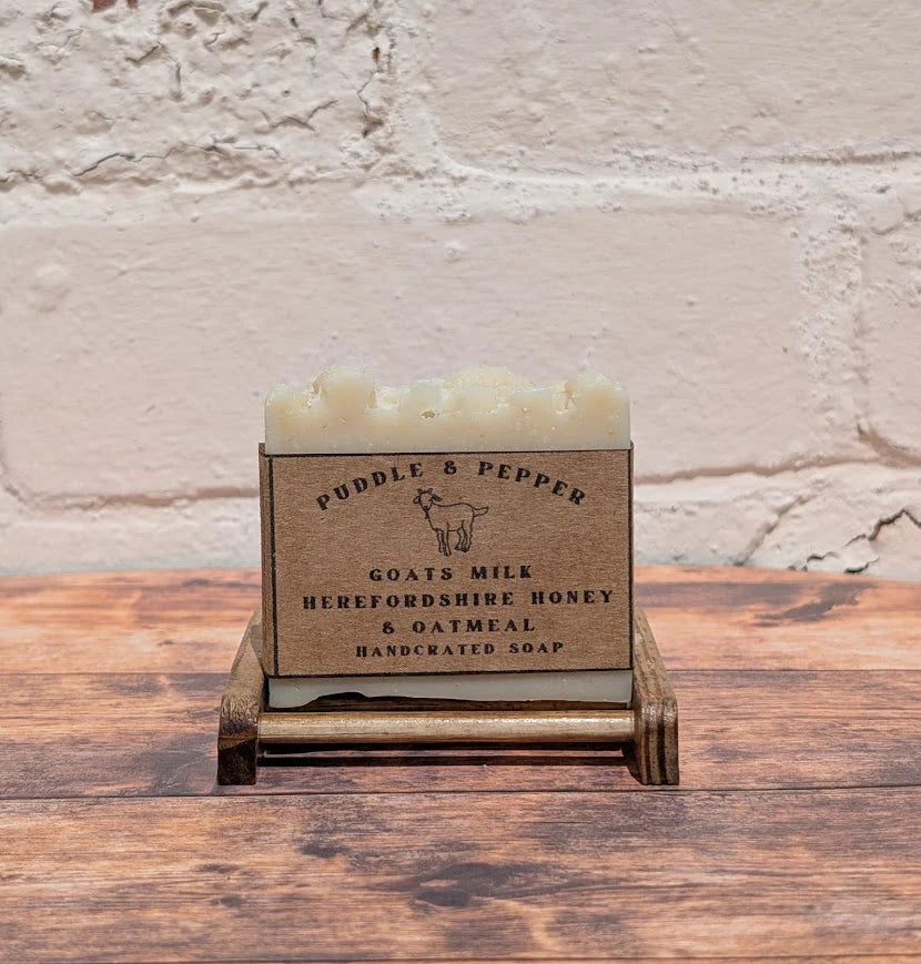 Gentle by nature; Nourish your skin with this creamy, soothing bar made with fresh local goat’s milk, golden Herefordshire honey, and finely ground organic oatmeal. Crafted in small batches, this soap is perfect for sensitive or dry skin, offering a gentle cleanse with a comforting, natural lather.